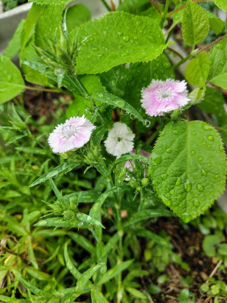 ①…カワラナデシコ🩷とアナベルの若葉✨🌿