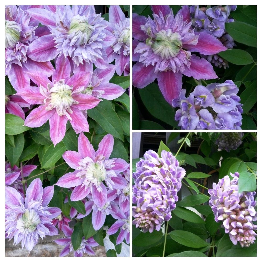 ①たわわに咲いていたクレマチスと 同じ色合いのアメリカフジ💜💜