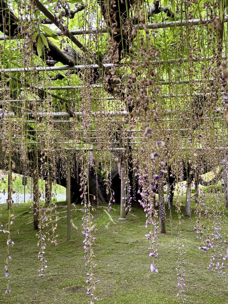 時期を逃したと言いながらまだ充分美しいように見えますが、、藤の花の終わりも趣があります 若いだけが魅力じや無いし 🤭