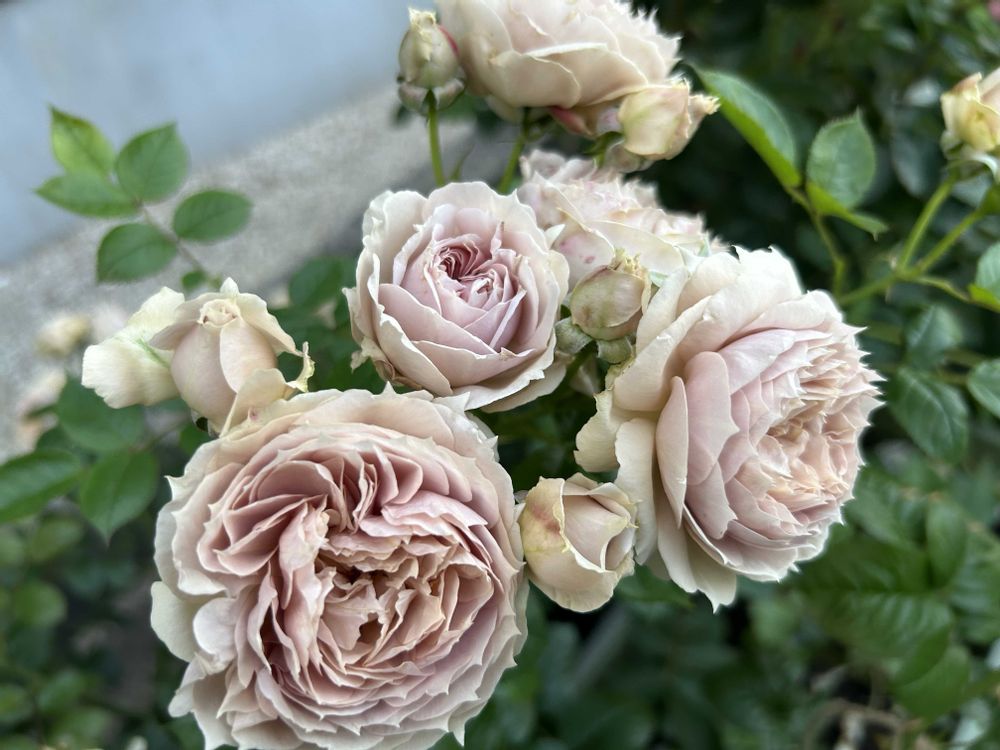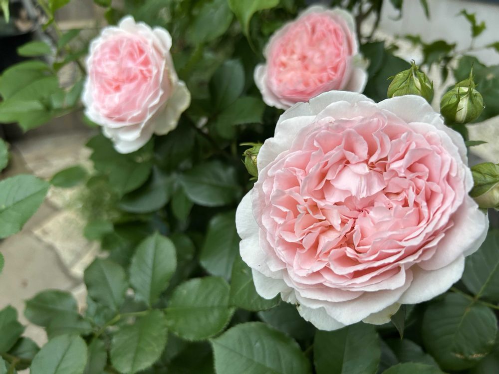 朝のポルトブルーは青みが強いです。咲き進むメルヘンツァウバー。房咲きでボリュームが出るルクソール。大輪で香りのいいアンクレット。日中の気温が上がってきたので咲き進むのが早くなってきました。