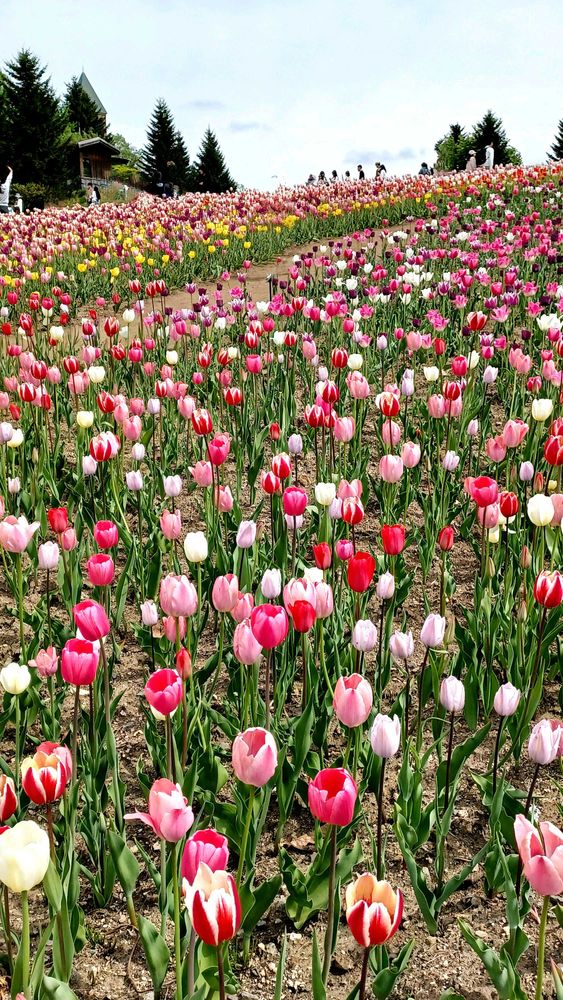 わぁ!北海道は、今がチューリップ🌷見頃なんですね!小さなチューリップに埋め尽くされたお庭がとても素敵です.゚(●´~`●)❁⃘*.゚