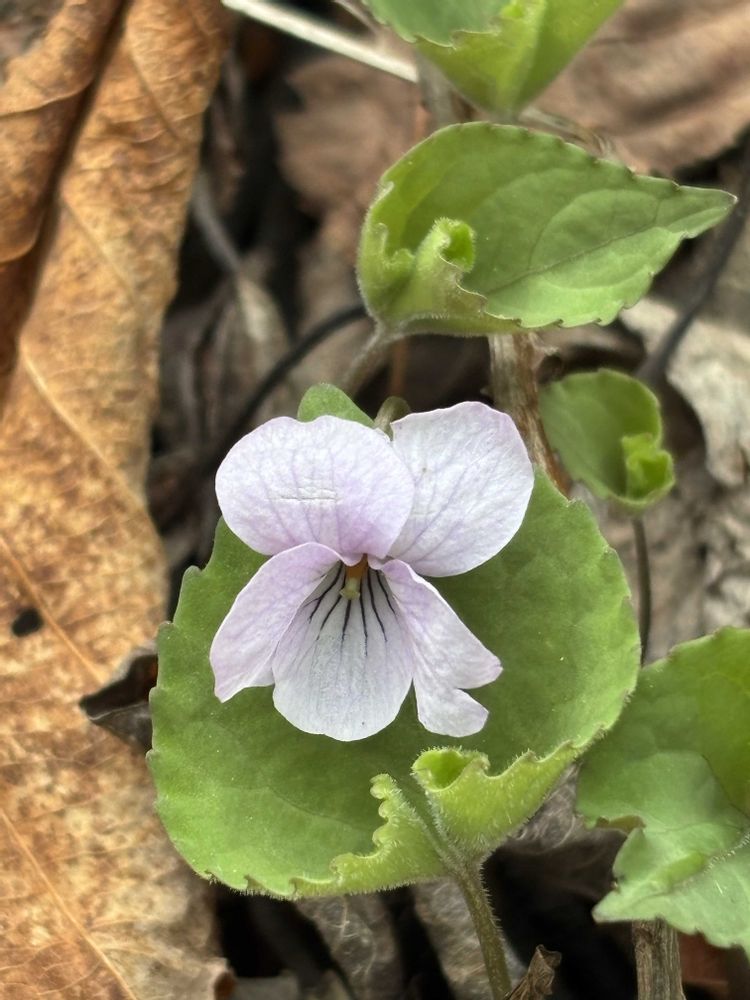 アケボノスミレって、花の位置と葉っぱの位置がいつも離れてるけど、①みたいに寄り添うこともあるんだね〜🥰