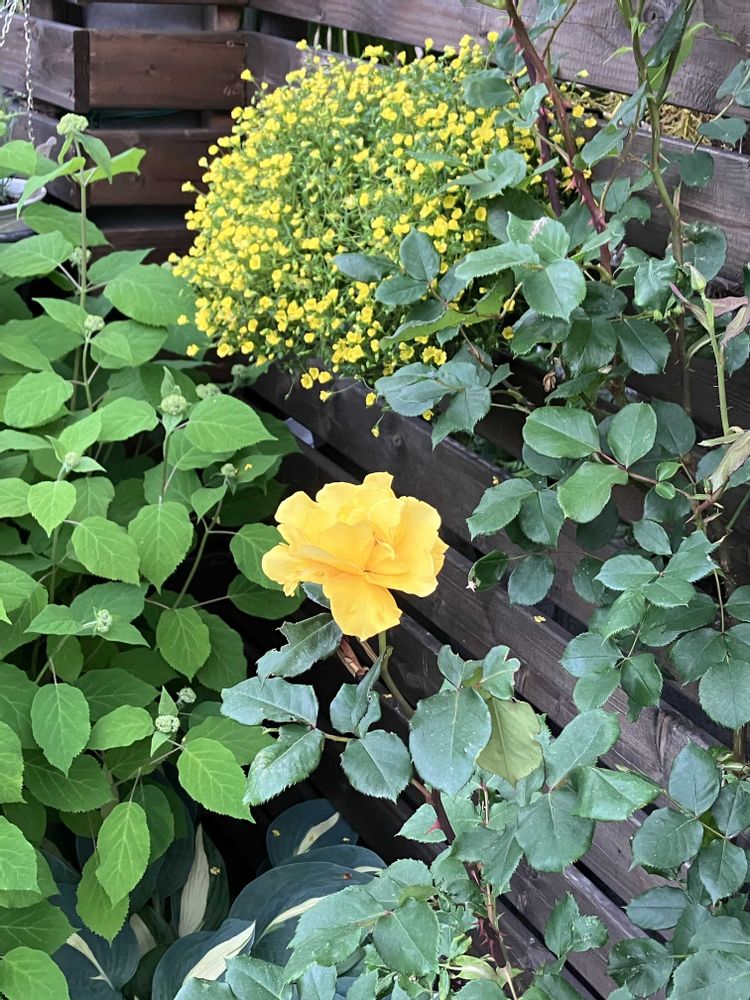 黄バラのヘンリーフォンダがやっと1輪咲きました