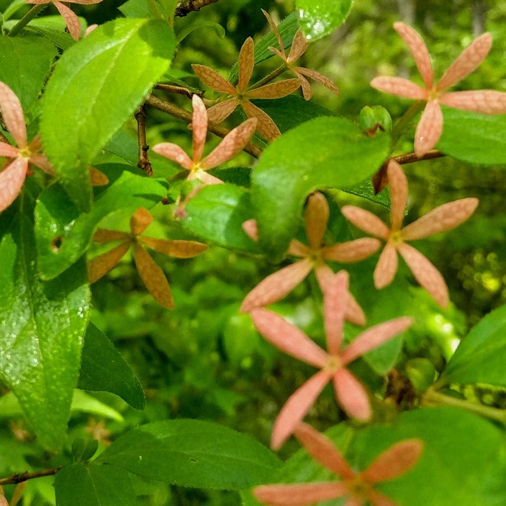 アベリアの萼片は羽根突きの羽根みたいね😊
