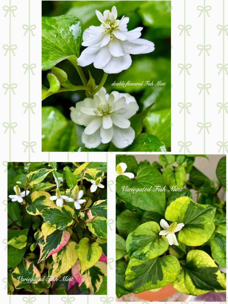 アレ?八重咲きのドクダミ持ってるんだけど、何か違う〜と、思ったら、葉っぱの色が我が家のは普通の色でした〜(花だけ八重咲き)ミドリの葉っぱだとドクダミらしく無くて、別の花みたいで綺麗〜🤍✨🤍✨🤍