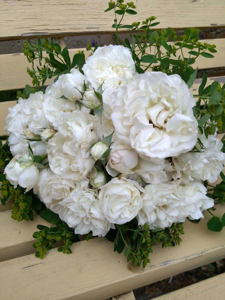 ①今日も花遊び🎶 ホワイトメイディランド🌹バッサリ切って周りにユーフォルビアのなんちゃら?!でお嫁ちゃまのブーケみたい💐