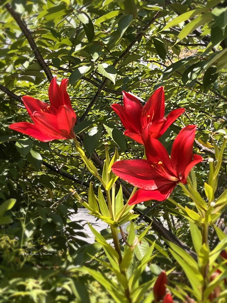 スカシユリはオレンジ色があるから、またのぶちゃんに見立てて、お散歩ちゃんで撮ってみますね🧡