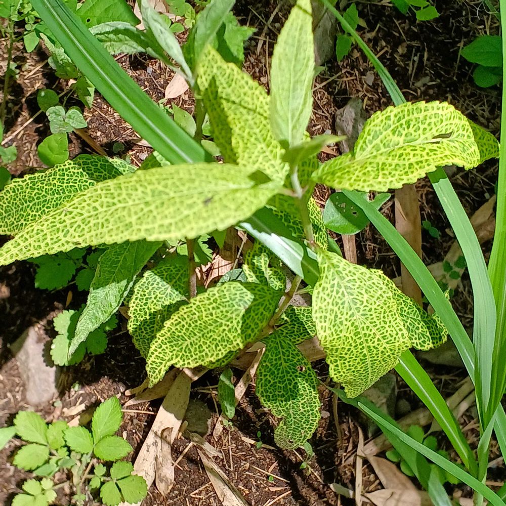 🔍️すると【ジェミニウイルス】と出て、ヒヨドリバナがウイルスに因って葉脈黄化症状になった事らしいです😓