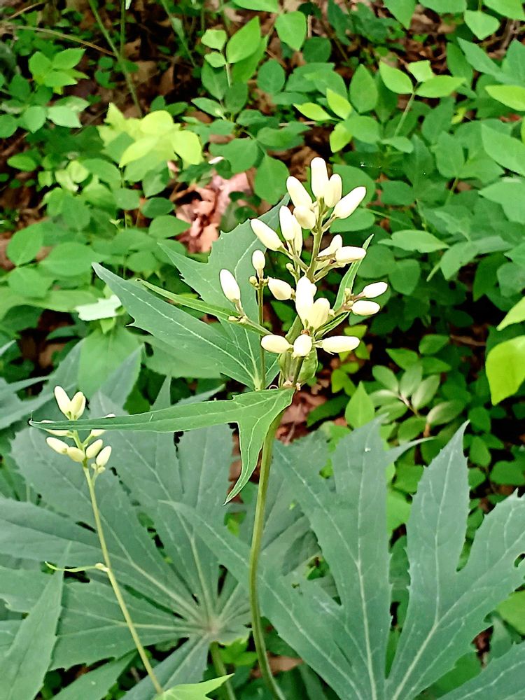 パッと見 花は咲いていませんでしたがのんびり目を凝らして散策すると、イチヤクソウ(2株)とヤブレガサの蕾を見つけました😆 コアジサイも所々で数株咲いていました😍