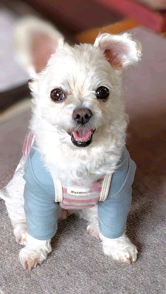 ちっこい白いワンコU^ェ^U🤍私に甘えに来ました (^^) ナデナデ