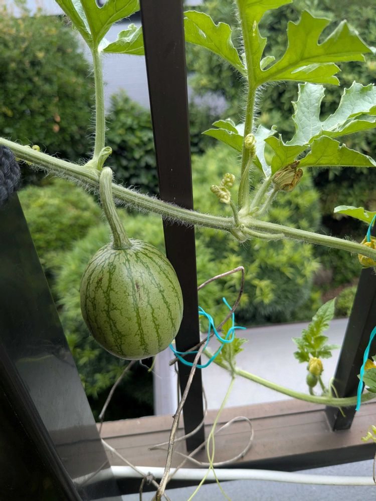 プランター栽培の赤い小玉スイカと黄色い小玉スイカが成長中‼️