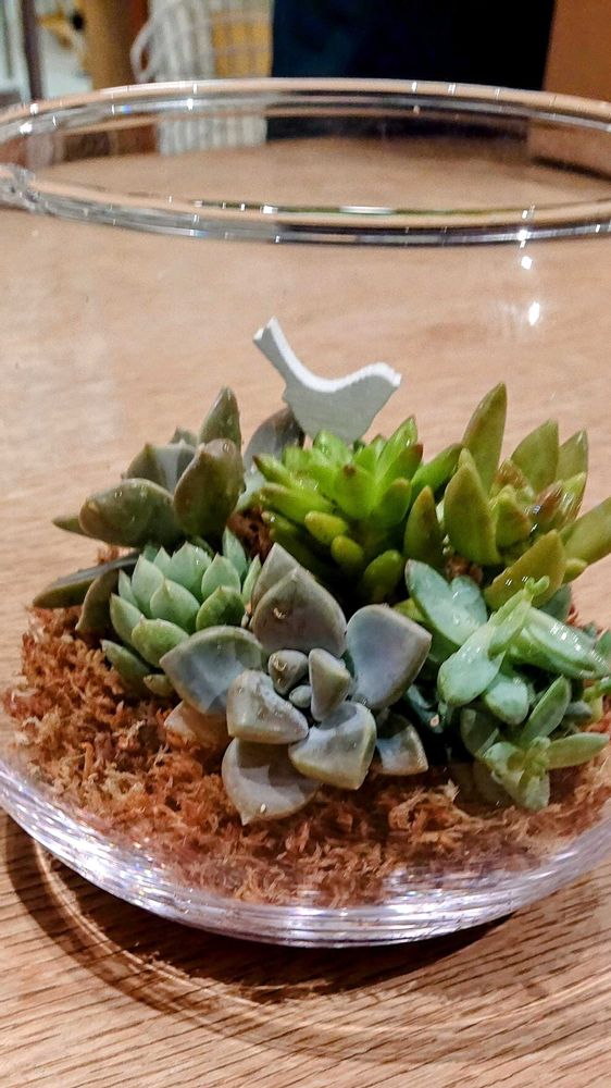 ⑤こちらも数年前のお教室で多肉を水苔に植付け。手前のはエケベリア?