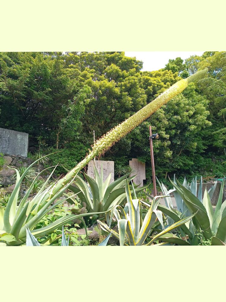 伊豆シャボテン動物公園では、巨大なリュウゼツラン「アガベ・ビルモリニアナ(オクトパスアガベ)」の花穂の成長が進み、現在4mほどまで伸長しておアップります。今後1週間ほどで花穂の下の方から開花が始まるという状況となっており、開花から2~3週間の間に少しずつ上へ、上へと無数の小さな黄色い花が咲き進んでいくものと予想されます。昨年6月3日