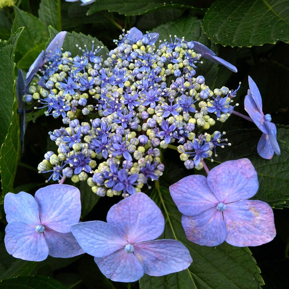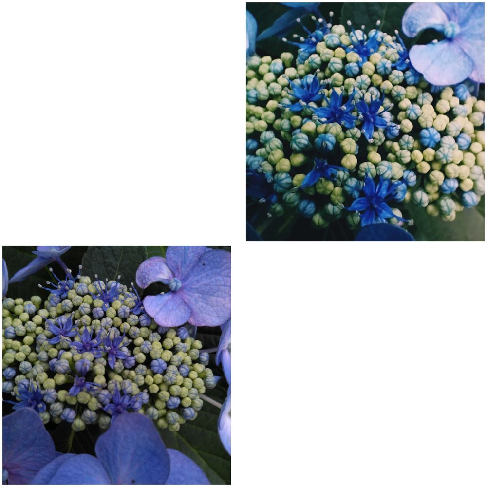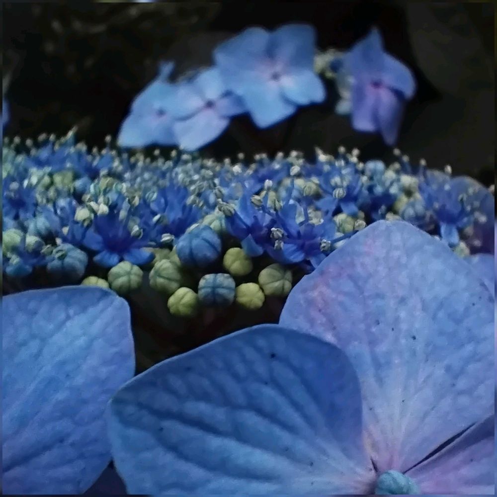 青から紫に変わる、昔からの額紫陽花を見ると、落ち着きます(*´︶`*)💜