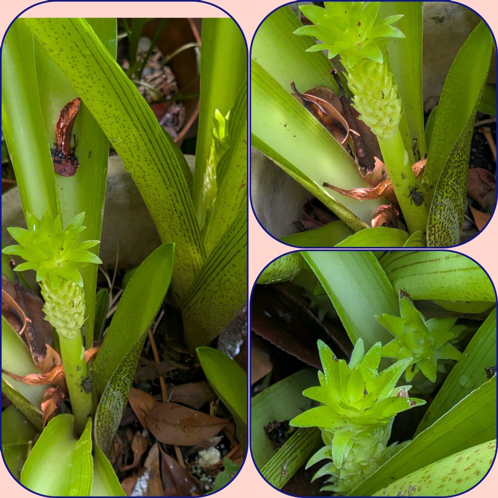①パイナップルリリーの蕾が沢山出てきました。二つ鉢植えあります。