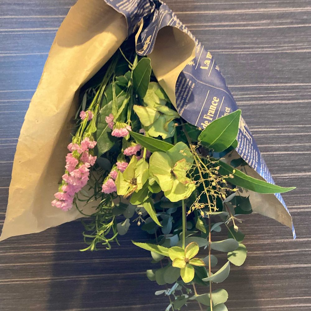 ユーカリ、ベイリーフ、ローズマリー、クリスマスローズ、ヒューケラ、スターチス