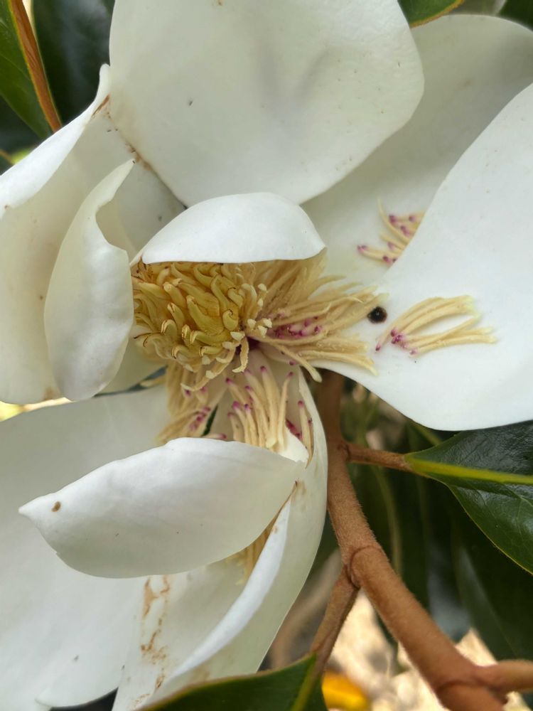 リトルジェム、やっと蕾から開いたのにすぐヨレヨレでも1m弱の木にタイサンボクと同じ花が咲いて超満足よ🥰