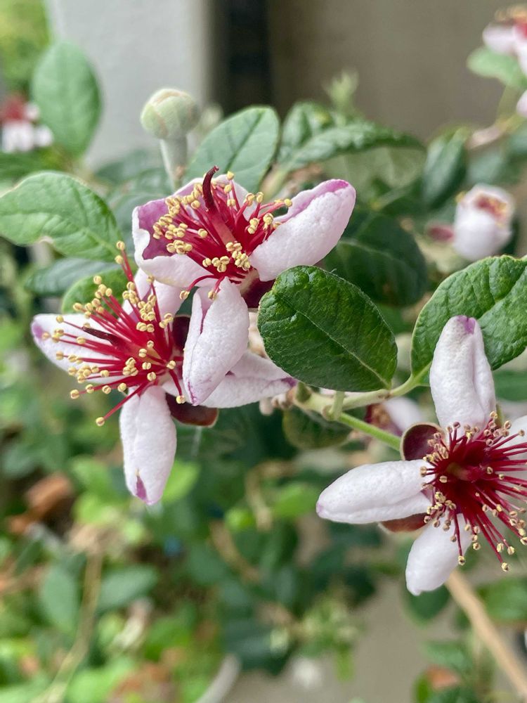 フェイジョアの花が今年も華やかに咲きましたʕ ◦`꒳´◦ʔ