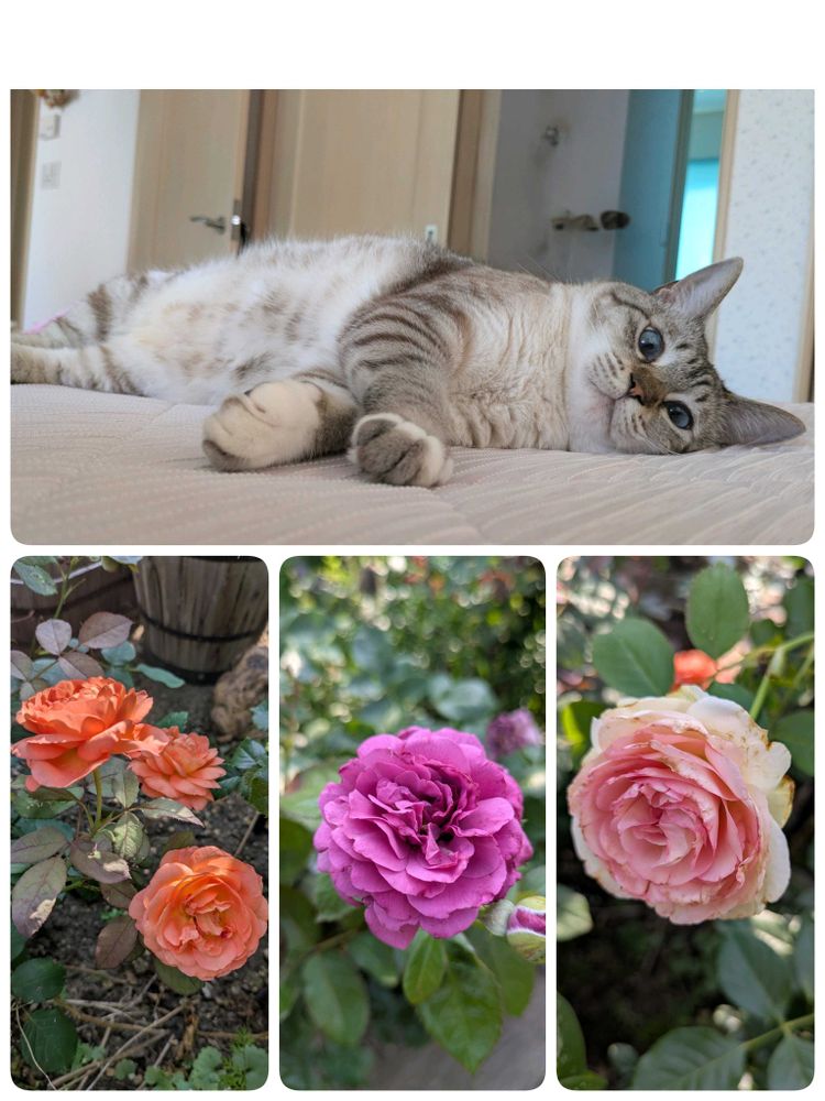 しかしそんだけ暑くてもバラは美しく咲いてらっしゃる♡にゃんこも可愛い😍