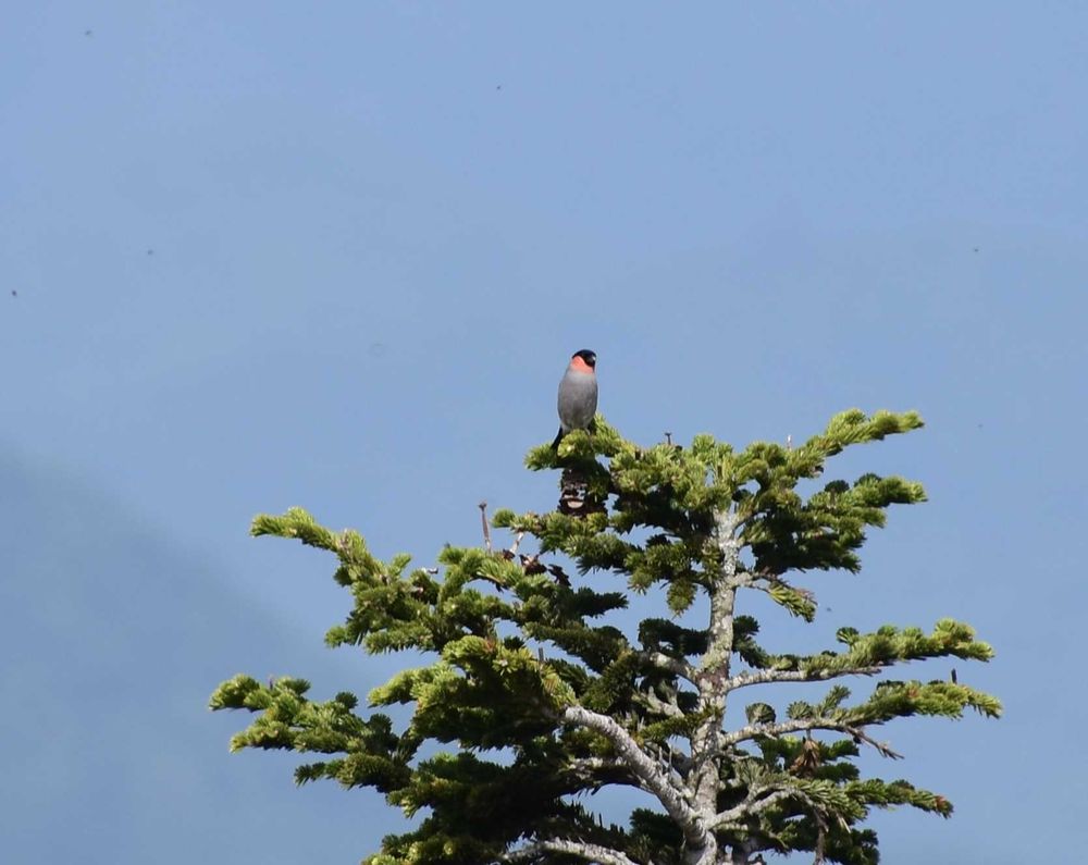 木のでっぺんでウソが気持ちよさそう。