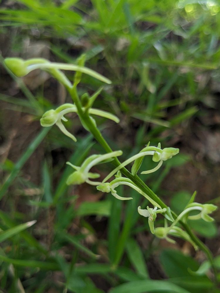 このオオバノトンボソウは、土の道の脇の斜面で見られます🍀