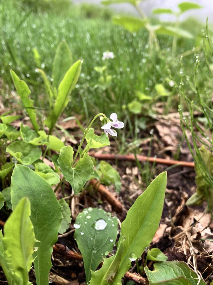 葉っぱはハート形に近いのも混じってるけど、先端が丸みを帯びてツボスミレの葉より柔らかい雰囲気です。