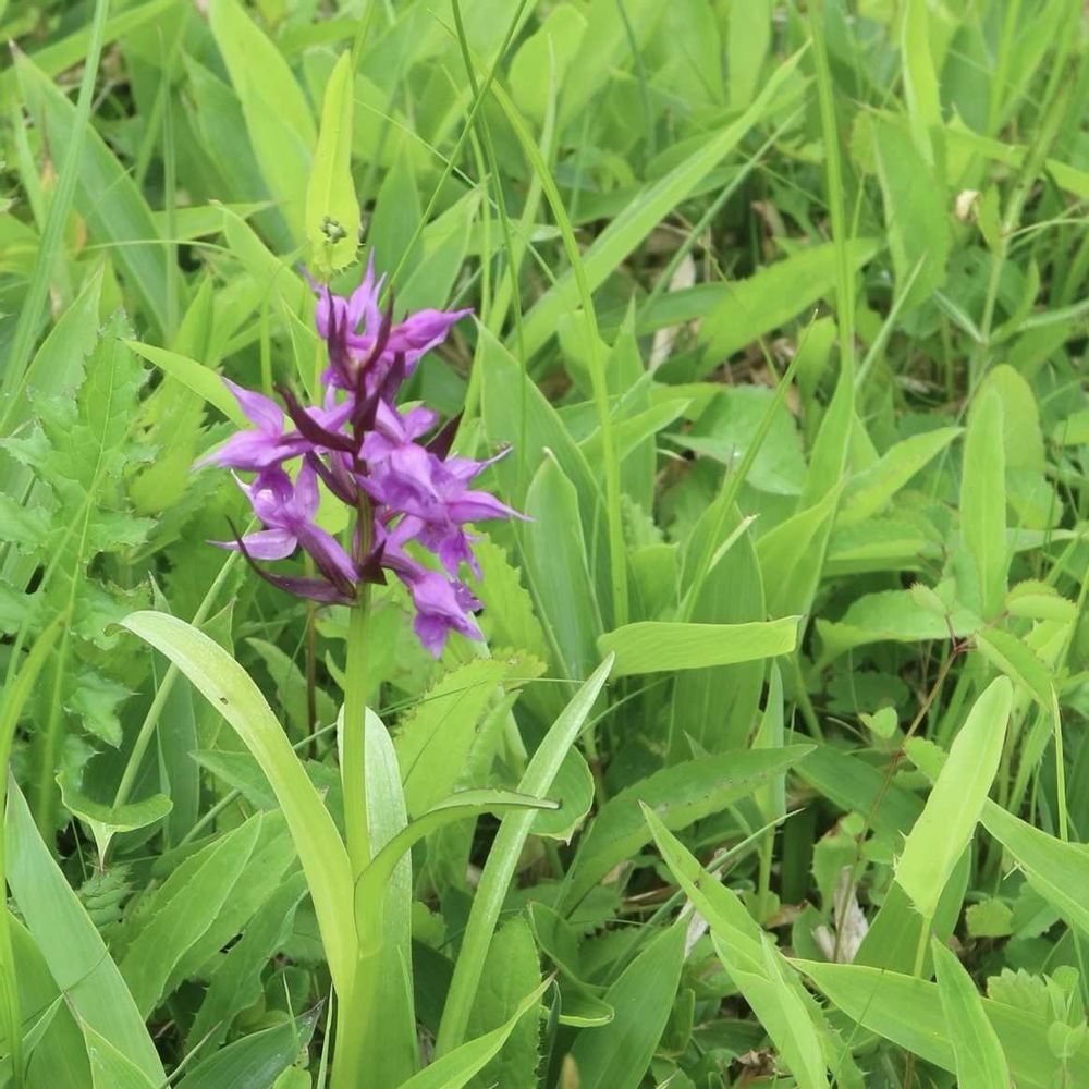①葉っぱの中にぽつんとハクサンチドリが顔を出していました💜