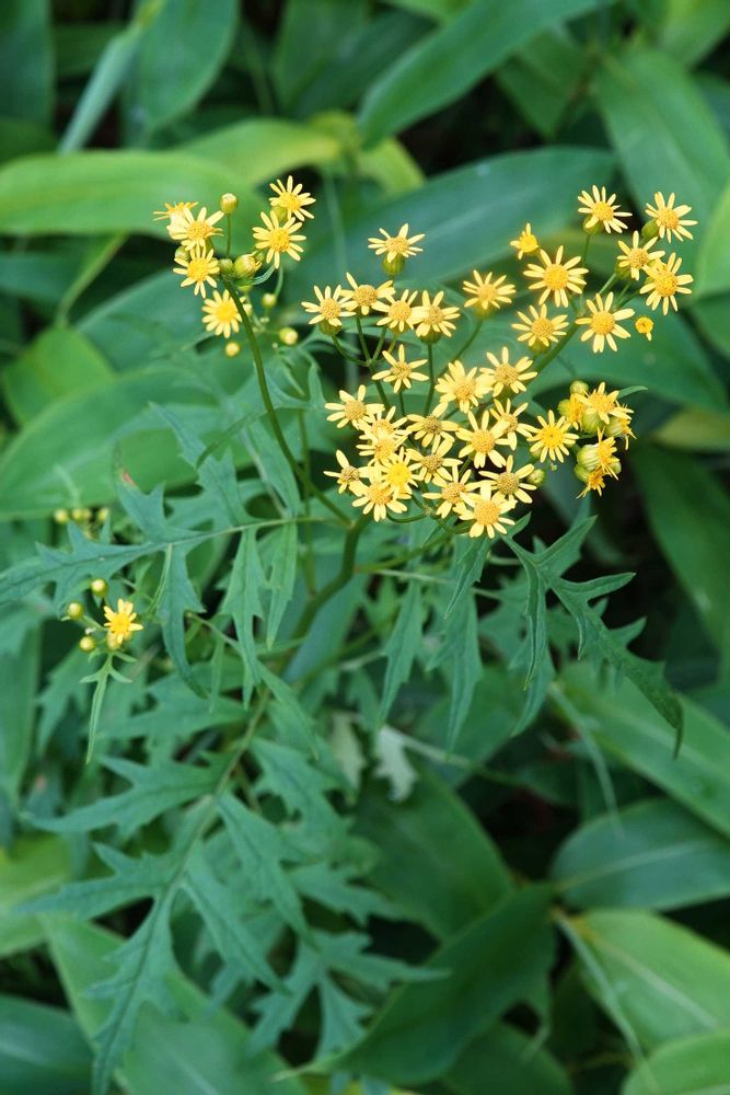 花はご覧の通り若干キク科の地味系ですが、林の中で明るく咲いて元気を振り撒いていました。