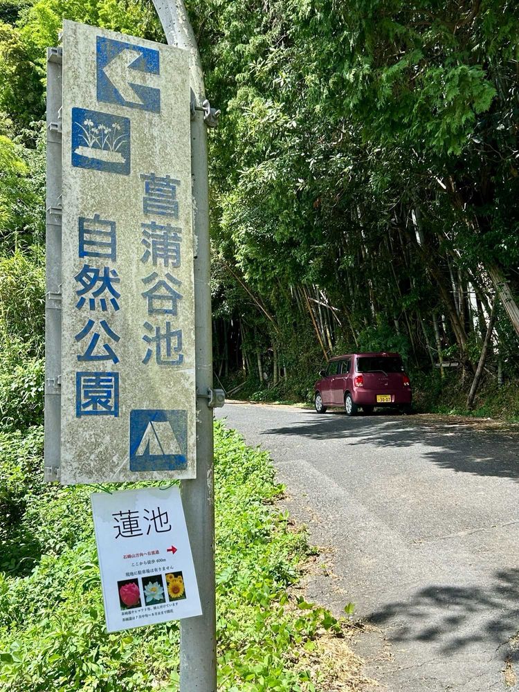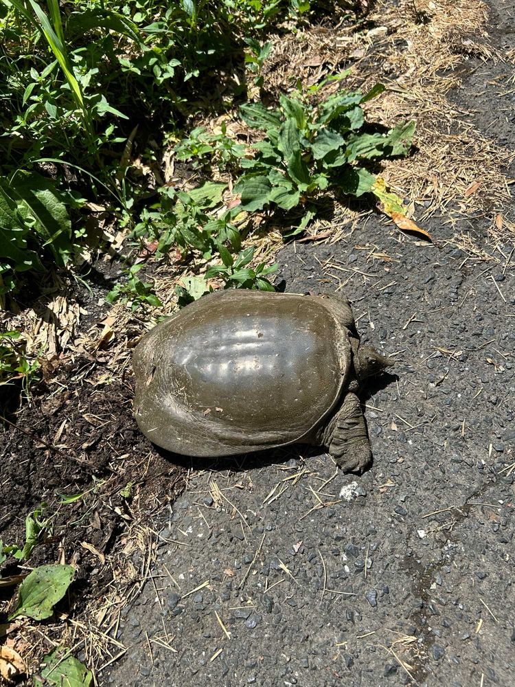 菖蒲谷キャンプ場入り口の案内板で待っていると、甲羅の長さ30cm程のスッポンを発見。