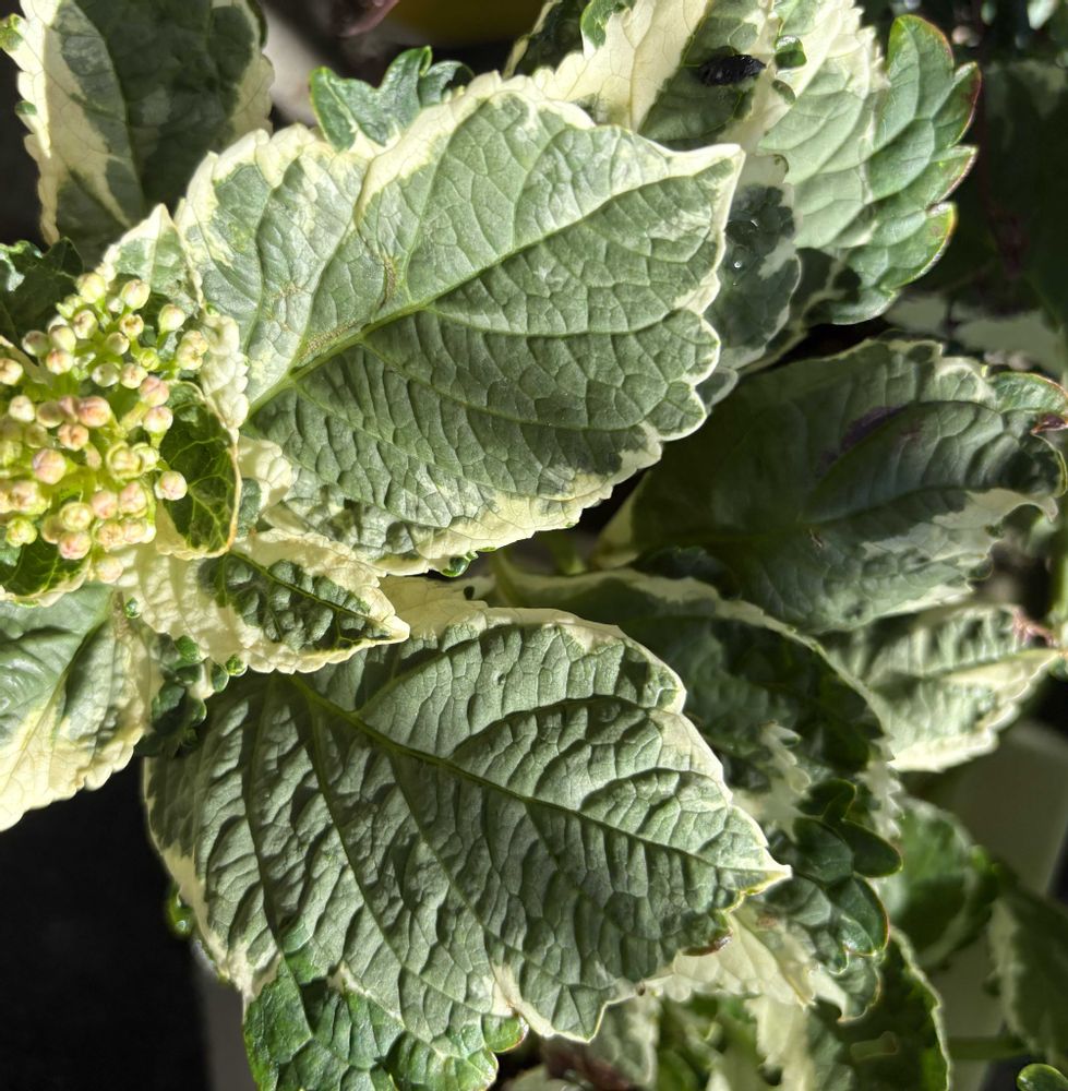 斑入りアジサイの蕾✨これで最後の花なのかしら?ひとつ前に投稿されたカシワバアジサイも見事でしたね〜😍