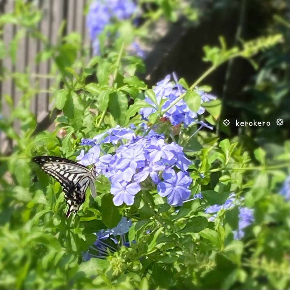 けろけろさんのルリマツリ,ルリマツリ(プルンパーゴ),アゲハ(ナミアゲハ)の投稿画像