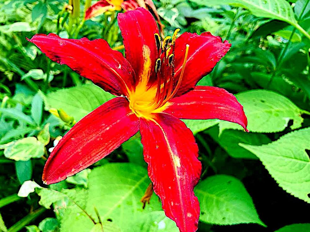 ひっそりとした静かな緑の茂みの中で、炎のような強いエネルギー溢れる色彩のオーラを放っていた、「へメロカリス」でおはようございます❤🔥💃✨
