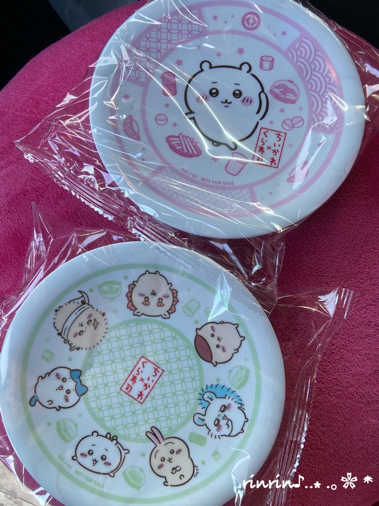 ちいかわのお皿、今日旦那がまたくら寿司予約してて、残りの2皿もGETしてきたよ✌️