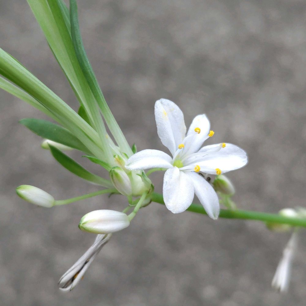 オリヅルランは、こんなにキレイなお花をさかせるんですね🤍🤍🤍