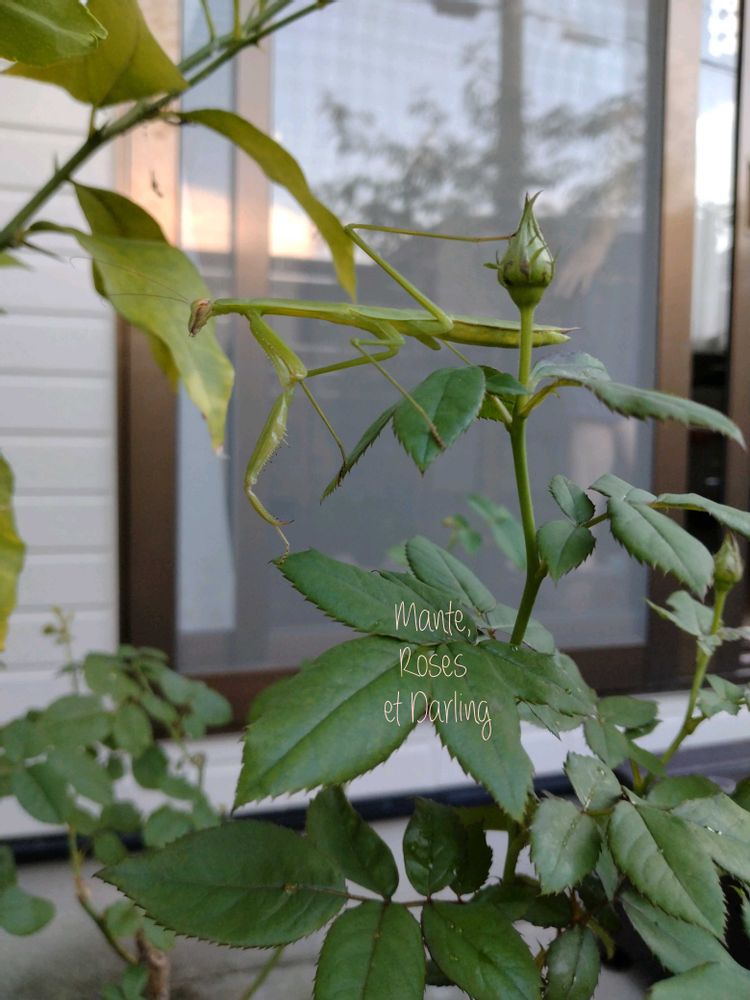 カマキリ,網戸越し,レモンの鉢植えの投稿画像