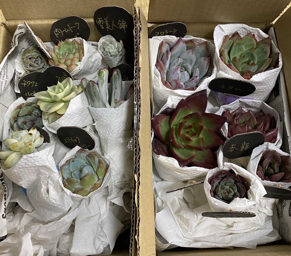 家に帰ると、通販で頼んでいた「Lazuli Letters」さんと「二代目大和高原の多肉屋」さんからの苗達が届いてた📦