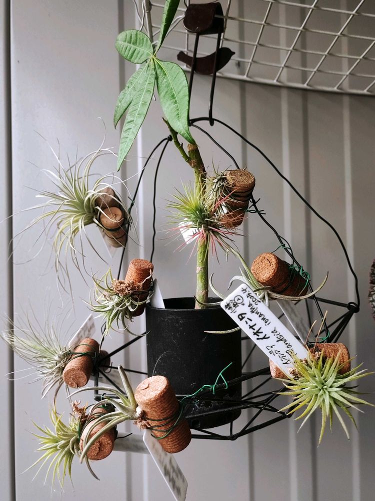 エアプランツも元気です。フンキアナが紅葉してます。他の人たちも毎日水やりして元気に育ってます。