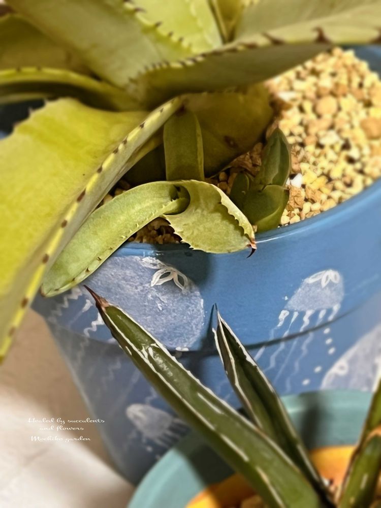 アガベ、大きく育って、そろそろ鉢増ししないと調子悪くなるといけないので、早くやらなくちゃ💦
