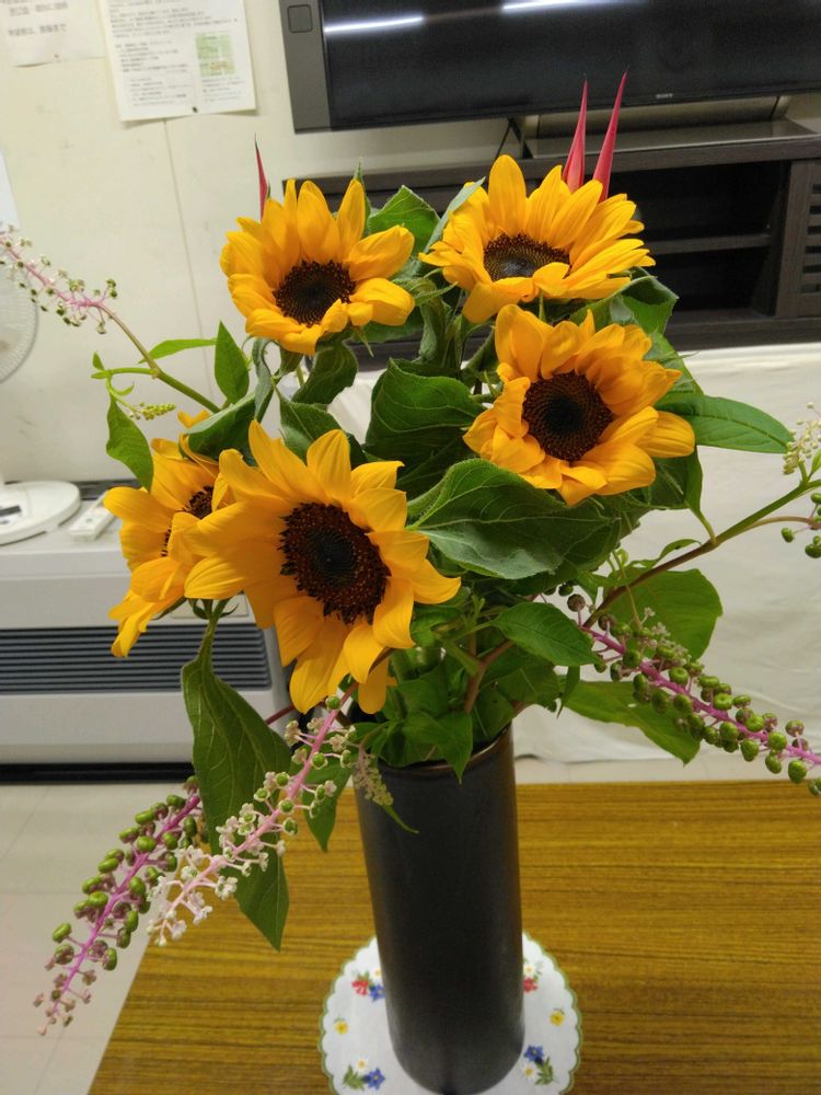 ヒマワリ,ヘリコニア,ヨウシュ ヤマゴボウの投稿画像