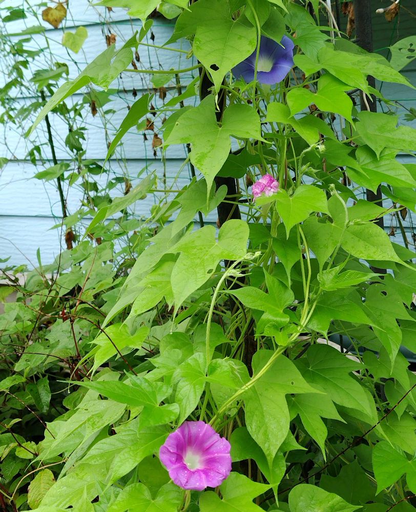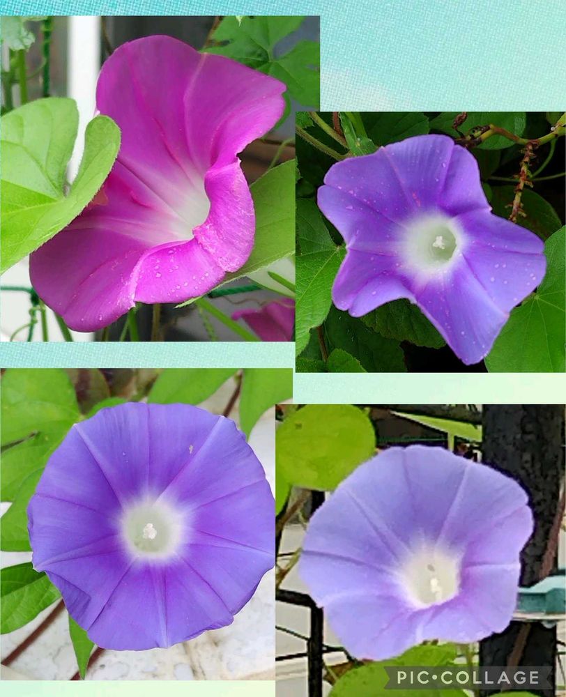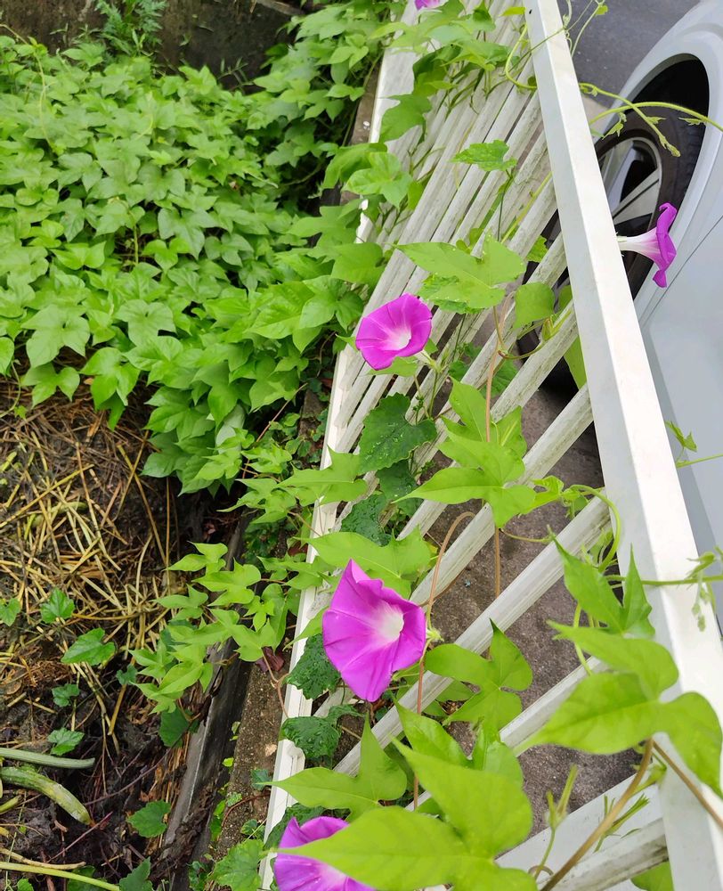 庭や畑のあちこちで咲いているこぼれ種の朝顔☘️💗💟☘️