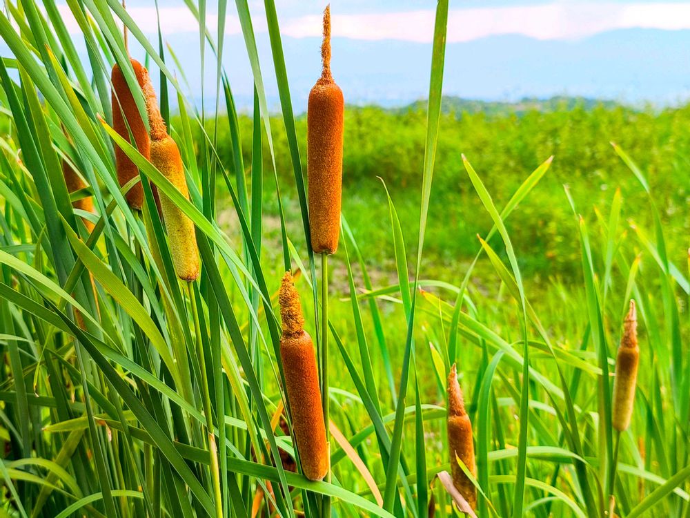 ガマの穂と田んぼはいい景色のセットですね🎶