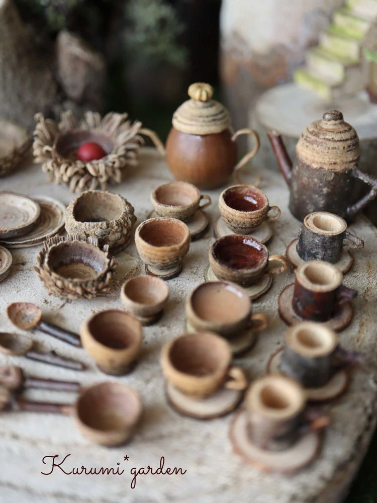 小さな木の実の食器たちを眺めているだけでワクワクしてきて