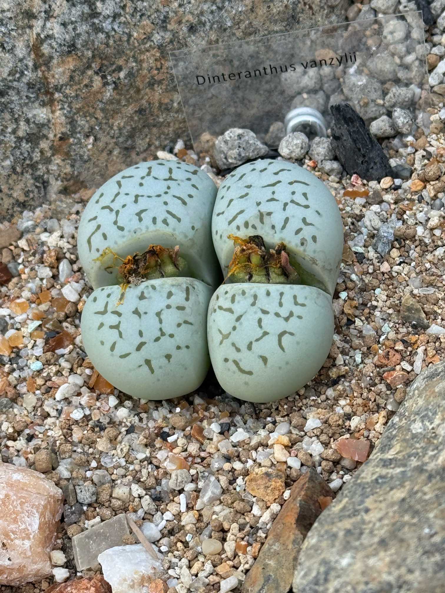 温室の見ごろ植物で、コノフィツム各種とありました。 綺麗な色の石ころがコロコロと💚🩵💚🩵
