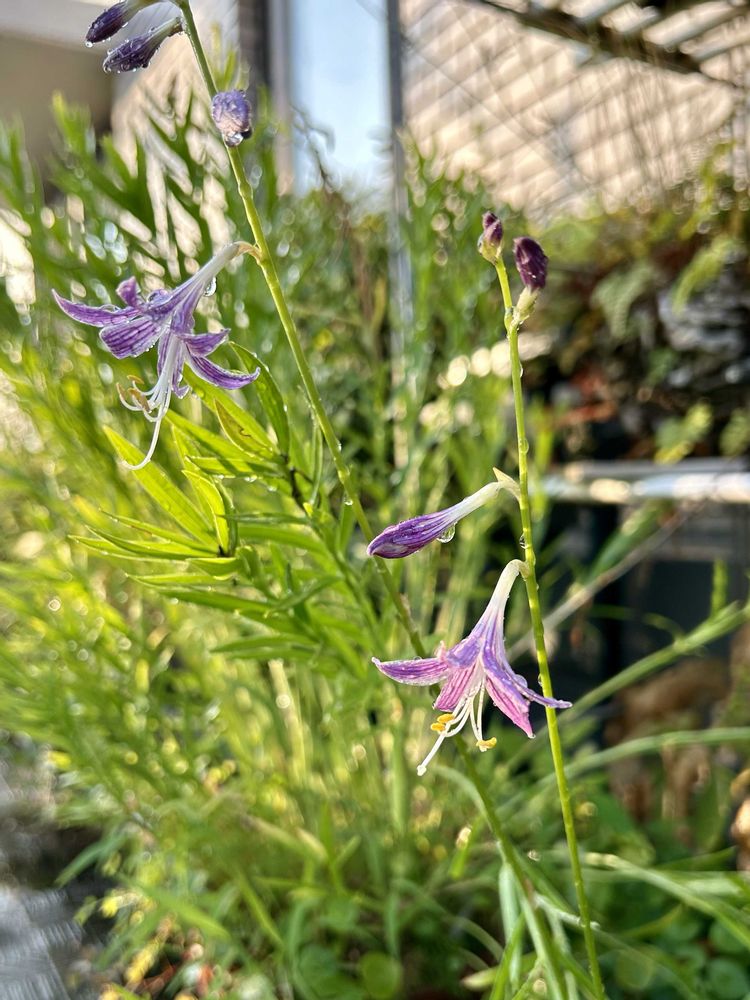 朝の水遣りタイムの瑞々しくも細々しい儚げな姿です。