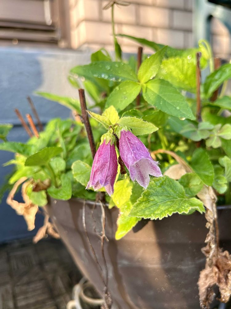 2枚目は三回転爆咲きしたので株を休めるために花茎を全部カット✂️したホタルブクロ。新たな花芽を伸ばして小さく咲いてます。そんなに頑張らなくていいよ🥺
