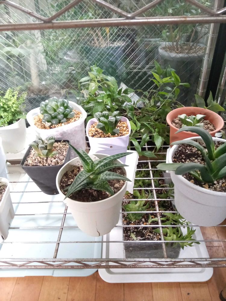 🌵(多肉)ハオの斑入りは、3年経ったら🟢緑色のハオ1号2号と同じに成りました。親株は👀!
