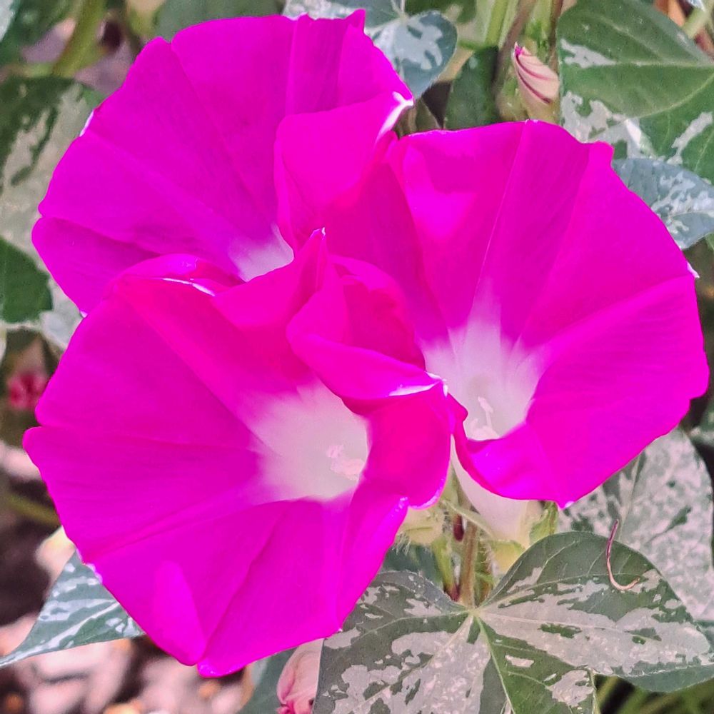 朝顔も斑入りの葉っぱにピンクの花とても綺麗です😍👍🎶🎶🎶
