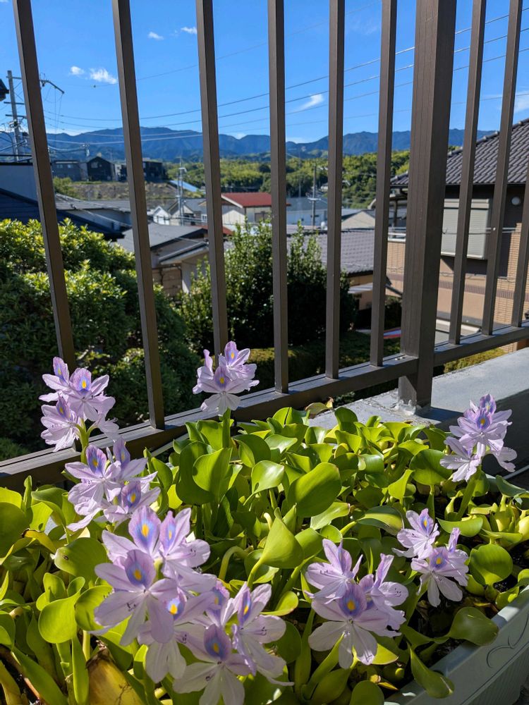 二階テラスでは水草のホテイアオイが満開に〜👏🥰🎶