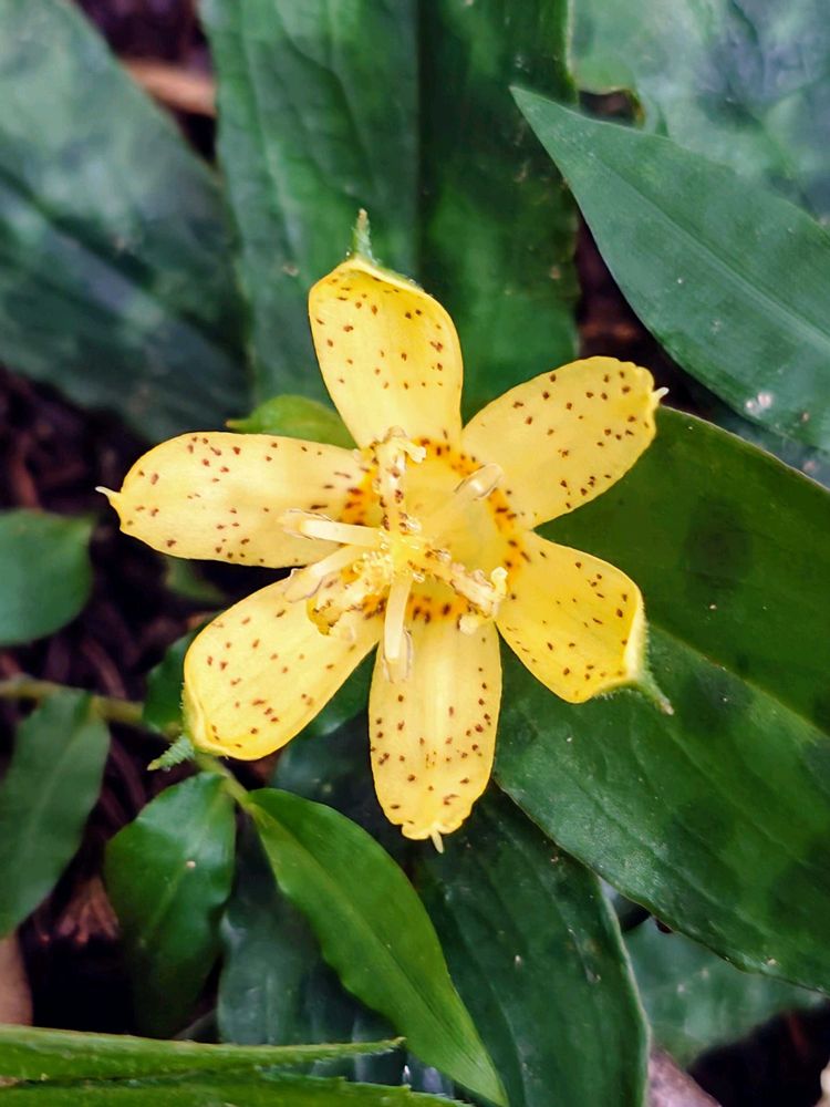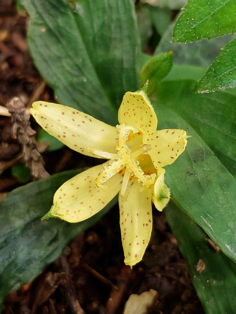 チャボホトトギスは一日花なんだけど、黄色いので緑の中でよく映えます︎🌟