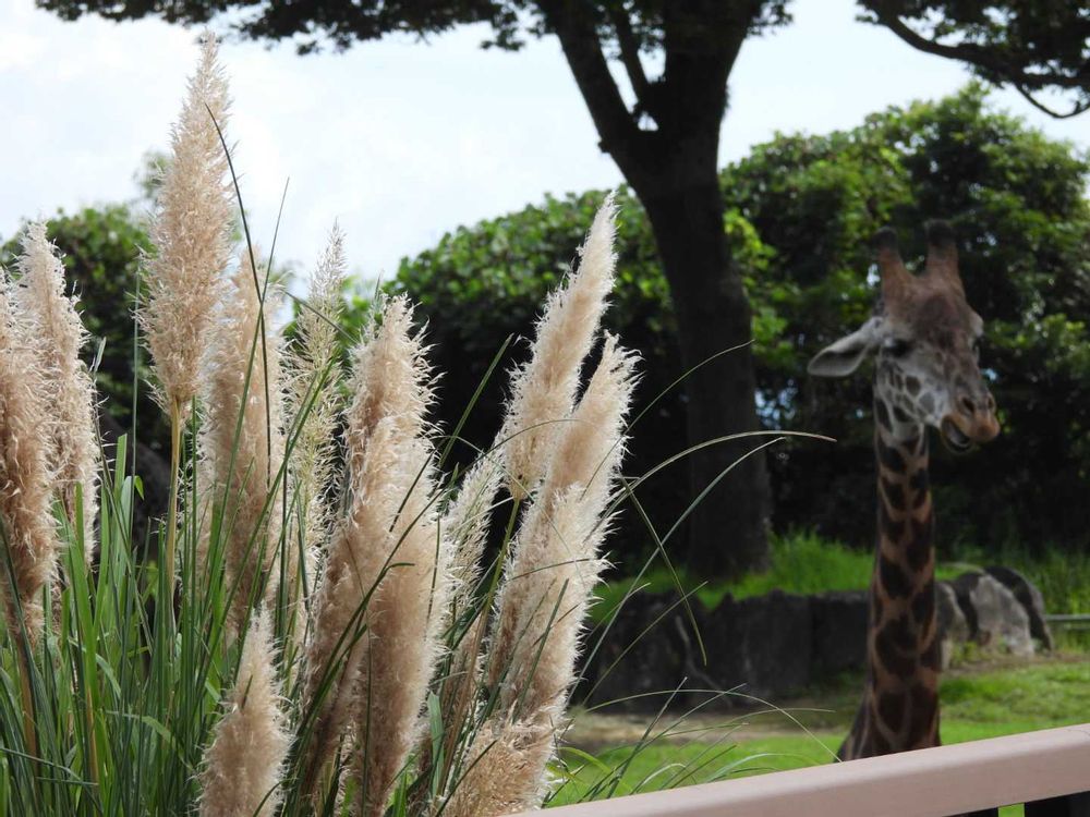 キリンも柵の中に自由に放牧されてます。かなり近くに来ますよ!🦒可愛いです!
